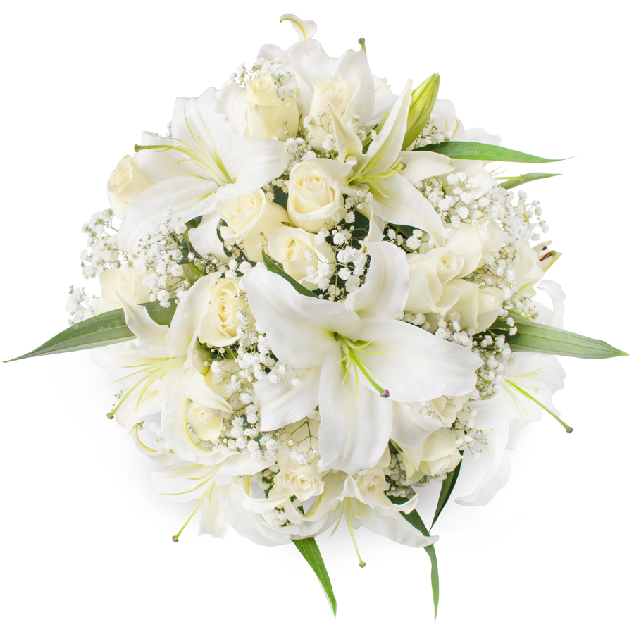 Discover the timeless elegance of our white rose ensemble, featuring hand-selected white roses, elegant lilies, and delicate gypsophila. This exquisite arrangement embodies beauty, grace, and peacefulness, making it a perfect luxurious gift for any occasion.